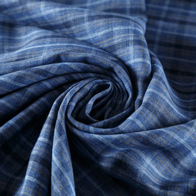 Итальянский костюмно-плательный лен в клетку синего оттенка. Ткань прочная, имееет на ощупь приятную поверхность, визуально - выраженный рельеф и полотняное переплетение, держит форму, пластичная. Подойдет для пошива костюмов, жилета, брюк, шорт, в том числе мужских, юбок, платьев, сарафанов, топов, комбинезонов, жакетов, кардиганов.