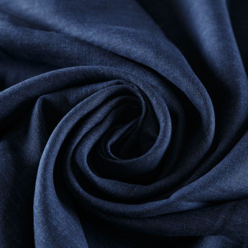 Итальянский костюмно-плательный лен оттенка темно-синего джинса. Ткань прочная, имееет на ощупь приятную поверхность, визуально - выраженный рельеф и полотняное переплетение, держит форму, пластичная. Подойдет для пошива костюмов, жилета, брюк, шорт, в том числе мужских, юбок, платьев, сарафанов, топов, комбинезонов, жакетов, кардиганов.