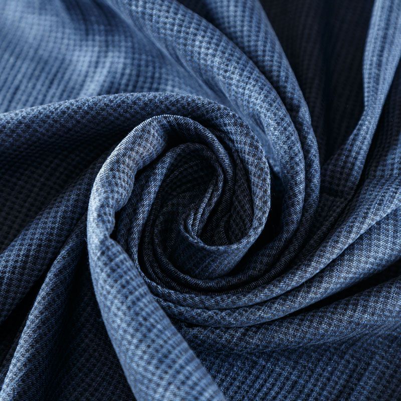 Итальянский костюмно-плательный лен синего оттенка в мелкую клеточку. Ткань прочная, имееет на ощупь приятную, гладкую поверхность, а визуально - выраженный рельеф и полотняное переплетение, держит форму, пластичная, мнется не сильно благодаря добавлению ацетата в состав материала. Подойдет для пошива костюмов, брюк, шорт, в том числе мужских, юбок, платьев, сарафанов, топов, комбинезонов, жакетов, кардиганов.