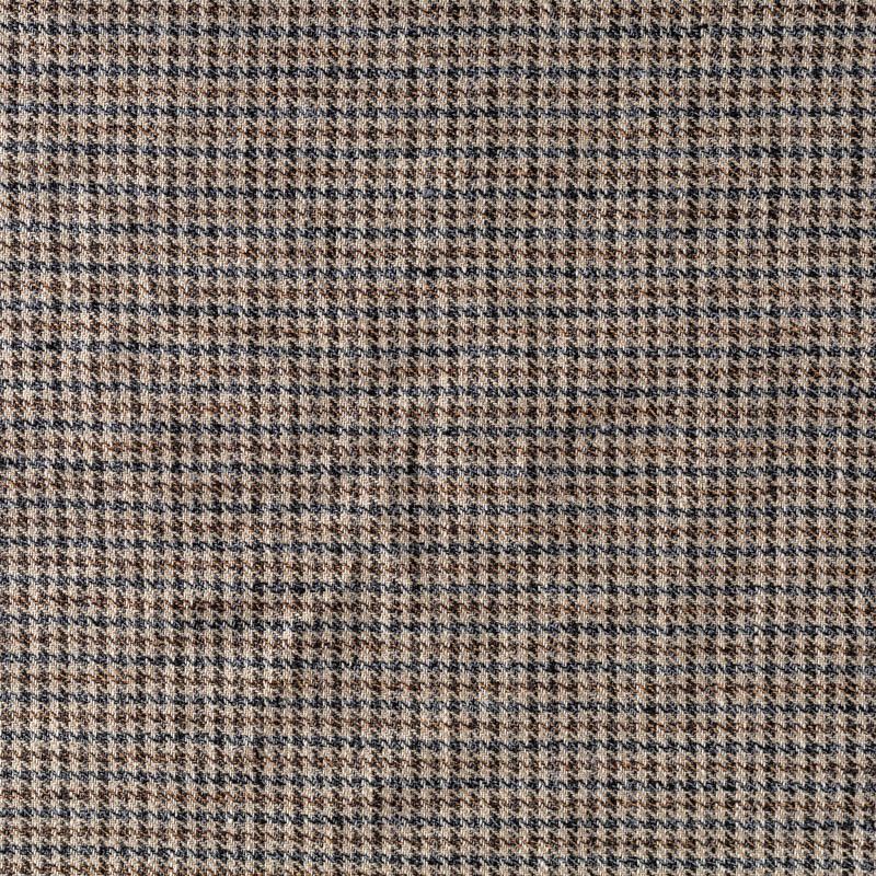 Прочный и плотный, выразительная матовая рельефная поверхность, полотняное переплетение, отлично держит форму, жестковатый на ощупь, но комфортный в изделии. Стильный вариант для летних пальто, платьев-футляров, сарафанов, юбок, жакетов, брюк или шорт. Льняная костюмно-плательная ткань с мелким принтом "гусиная лапка" в классических коричнево-синих тонах.