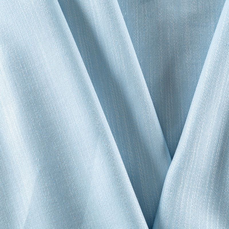 Итальянский плательно-костюмный лен с добавлением шелка в голубом оттенке. Материал имеет гладкую, шелковистую поверхность с едва заметным лоском, пластичный, хорошо драпируется. Ткань режется купоном по длине рулона, в нижней части купона материал декорирован мережкой, которая при крое может стать декоративным элементом в изделии. Лен подойдет для пошива платья, сарафана, жакета, юбки, брюк.