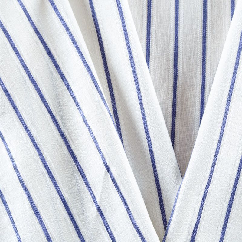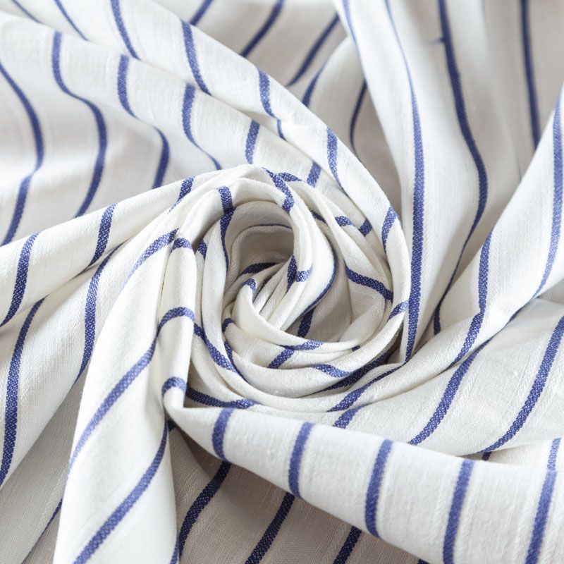 Итальянский костюмно-плательный лен с добавлением вискозы в горизонтальную жаккардовую полоску цвета деним. Ткань прочная, имееет на ощупь приятную, гладкую поверхность, а визуально - выраженный рельеф и полотняное переплетение, держит форму, пластичная. Подойдет для пошива костюмов, брюк, шорт, юбок, платьев, сарафанов, топов, комбинезонов, жакетов, кардиганов.