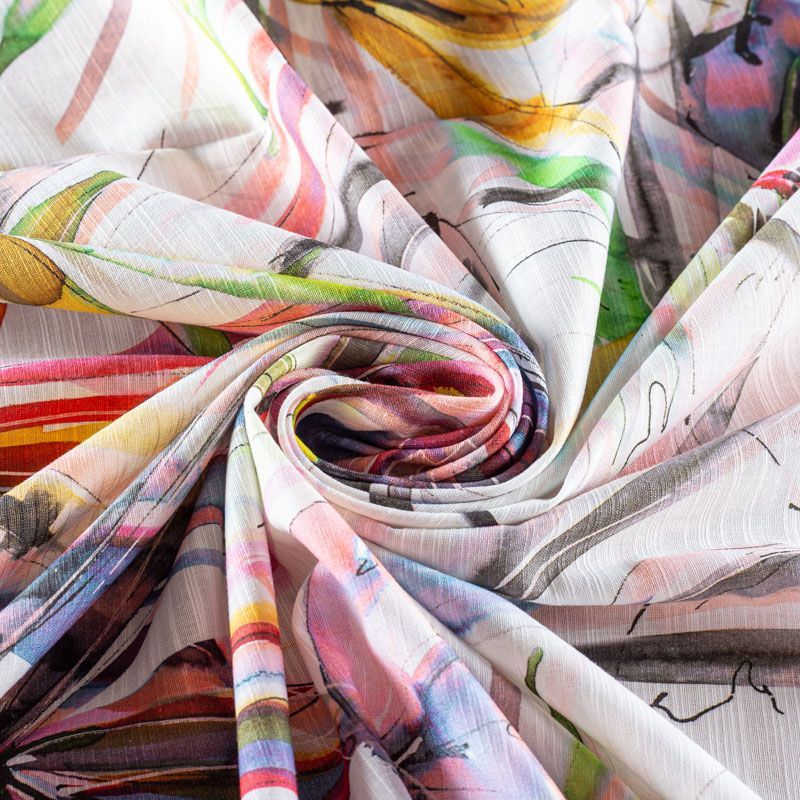 Лен-вискоза 035-1019 молочный принтованный в Москве