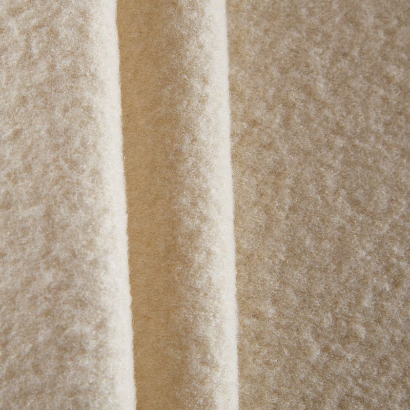 Итальянский шерстяной лоден очень прочный, немного буклированный, внешне и тактильно напоминающий сукно. Его очень приятно и очень легко кроить. Неосыпающийся срез валяной шерсти позволяет оставить его необработанным и шить изделие без подкладки, швами наружу и носить вещь на обе стороны. Причём, в одном изделии можно скомбинировать открытые и закрытые швы. Вещи из лодена смотрятся очень эффектно. Прекрасно получится кардиган, пончо, костюм, платье, юбка, накидка, легкое пальто.