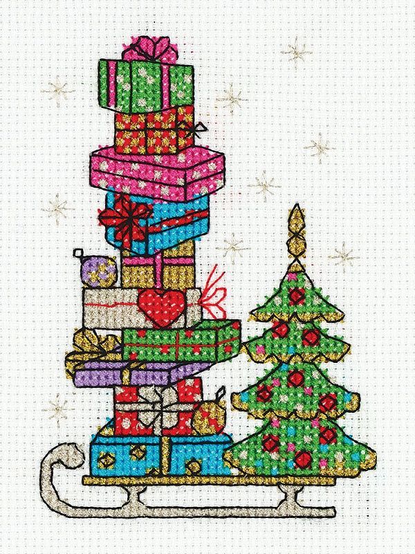 Набор для вышивания Klart 10,5х14 см 8-357 Сани с подарками в Москве