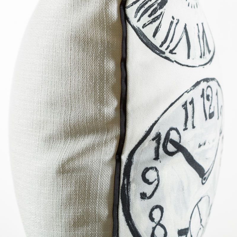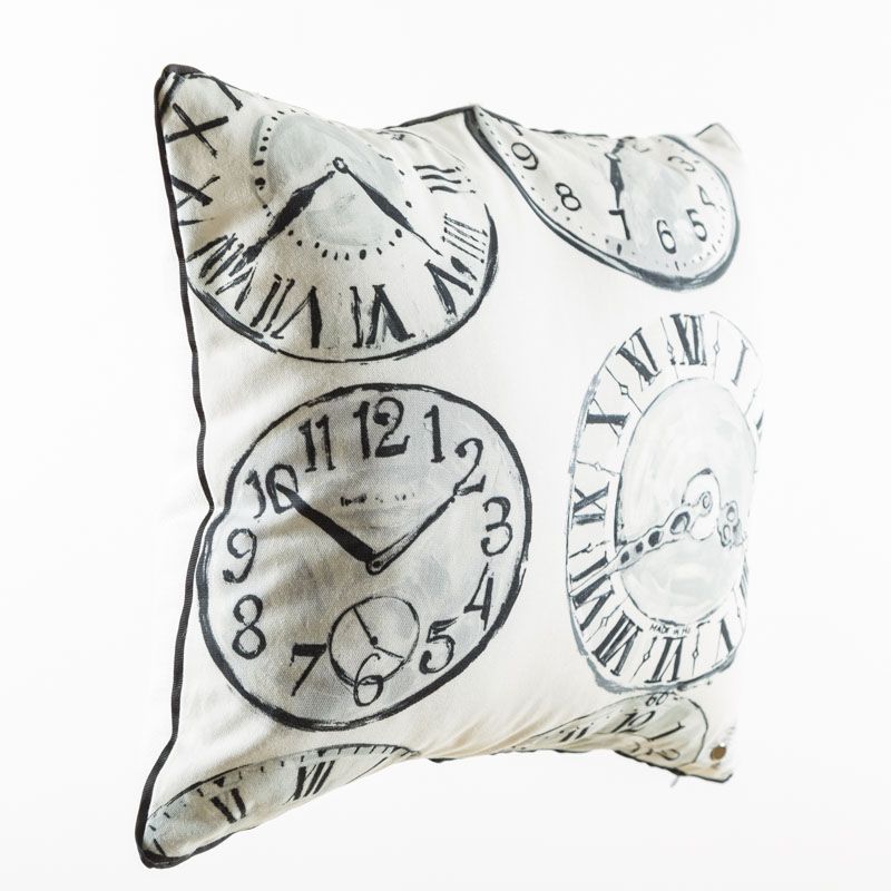 Оригинальная дизайнерская наволочка на подушку 50х50 см. Лицевая сторона выполнена из портьерной ткани с принтом "Часы" в черно-серых оттенках. Обратная сторона - фактурная ткань молочного цвета. Наволочка декорирована репсовым кантом в тон рисунка. Потайная молния расположена в нижнем шве. Декоративные подушки сделают акцет на цветовой гамме Вашего помещения, подчеркнут особенности интерьерного стиля или тематику оформления. Внимание! Подушка-вкладыш приобретается отдельно.