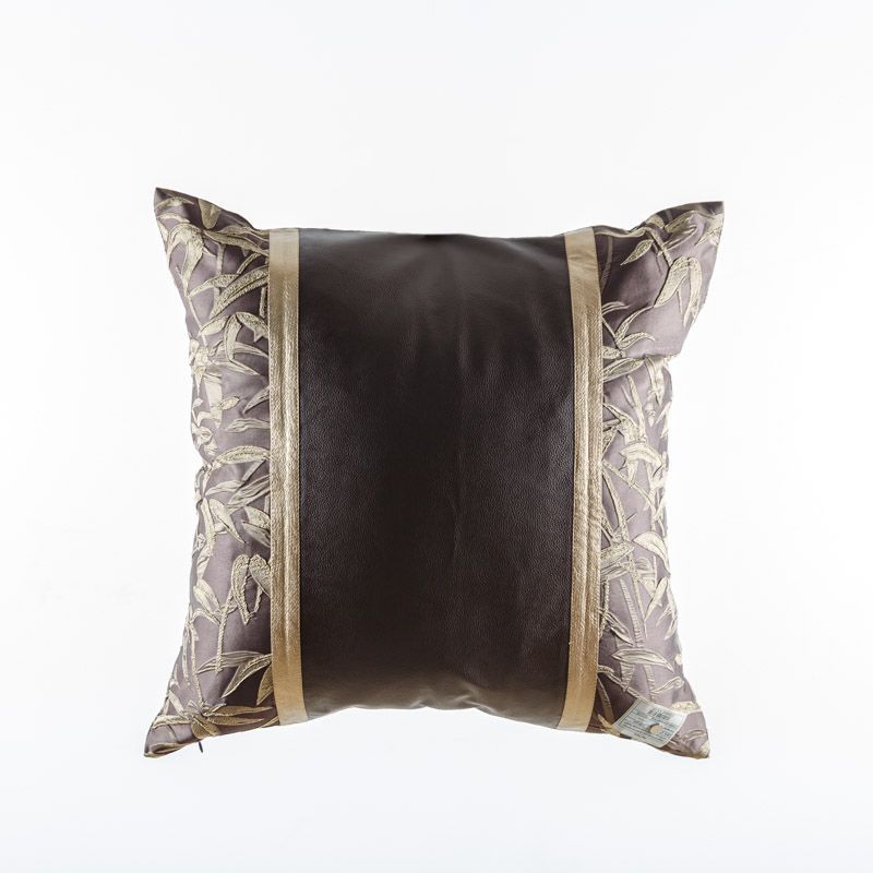 Оригинальная дизайнерская наволочка на подушку 55х55 см. Выполнена из жаккарда Giber и экокожи и декорирована тесьмой. Потайная молния расположена в нижнем шве. Декоративные подушки сделают акцет на цветовой гамме Вашего помещения, подчеркнут особенности интерьерного стиля или тематику оформления. Внимание! Подушка-вкладыш или синтепон приобретаются отдельно.