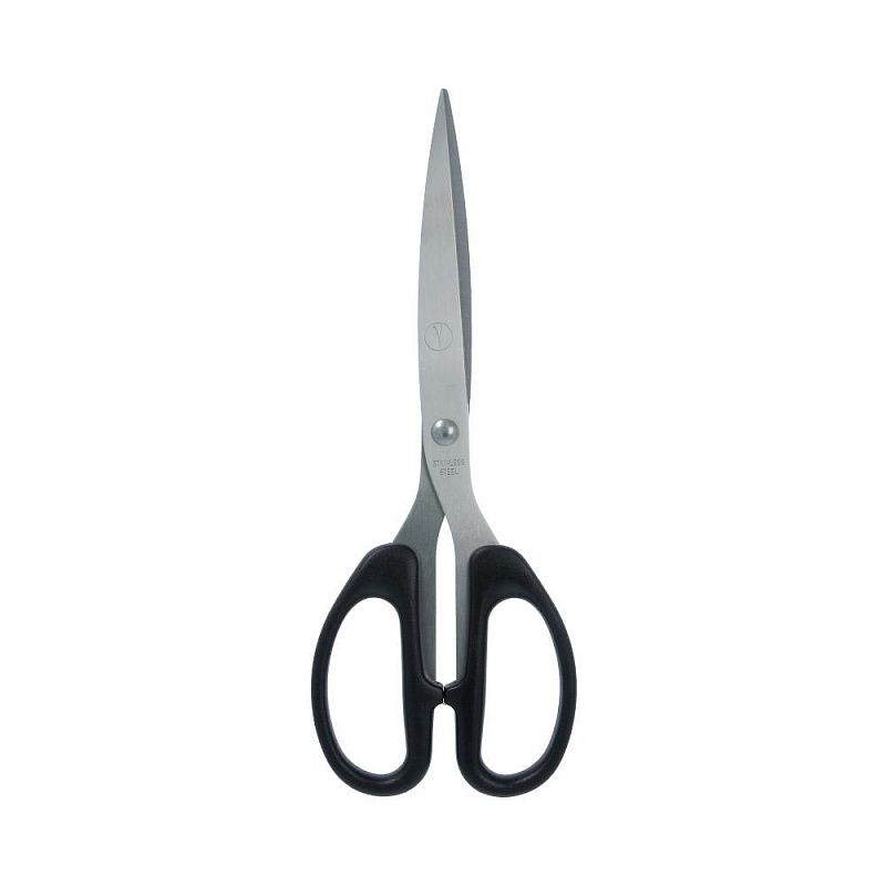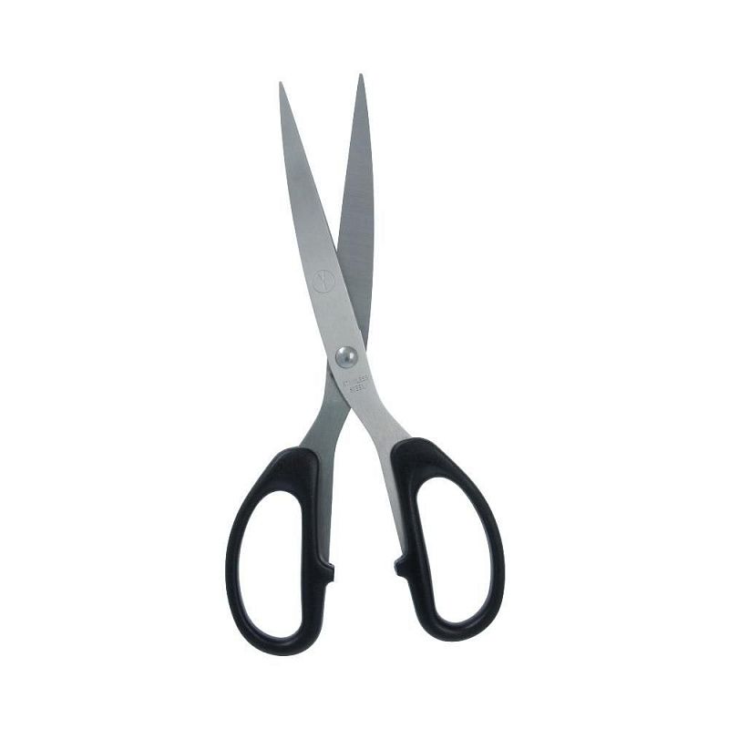 Универсальные ножницы используются для рукоделия, в офисе и быту для различных целей. Металлические с пластиковыми термостойкими ручками, которые не плавятся при соприкосновении с утюгом. Ножницы изготовлены из инструментальной стали марки 30х13. Сталь содержит хром, который придает инструменту дополнительную прочность. Режущие поверхности сходятся идеально. Кончики легко разрезают материал, не заминая край; режущие поверхности сходятся идеально.