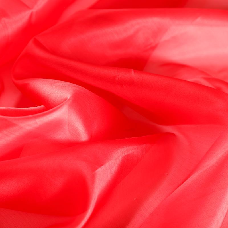 Шелковая невесомая органза с искрящейся поверхностью красного цвета. Ткань легкая, тонкая, пластичная, хорошо драпируется, просвечивает, отлично держит форму. Подойдет на блузку, платье, тунику или юбку на подкладе.