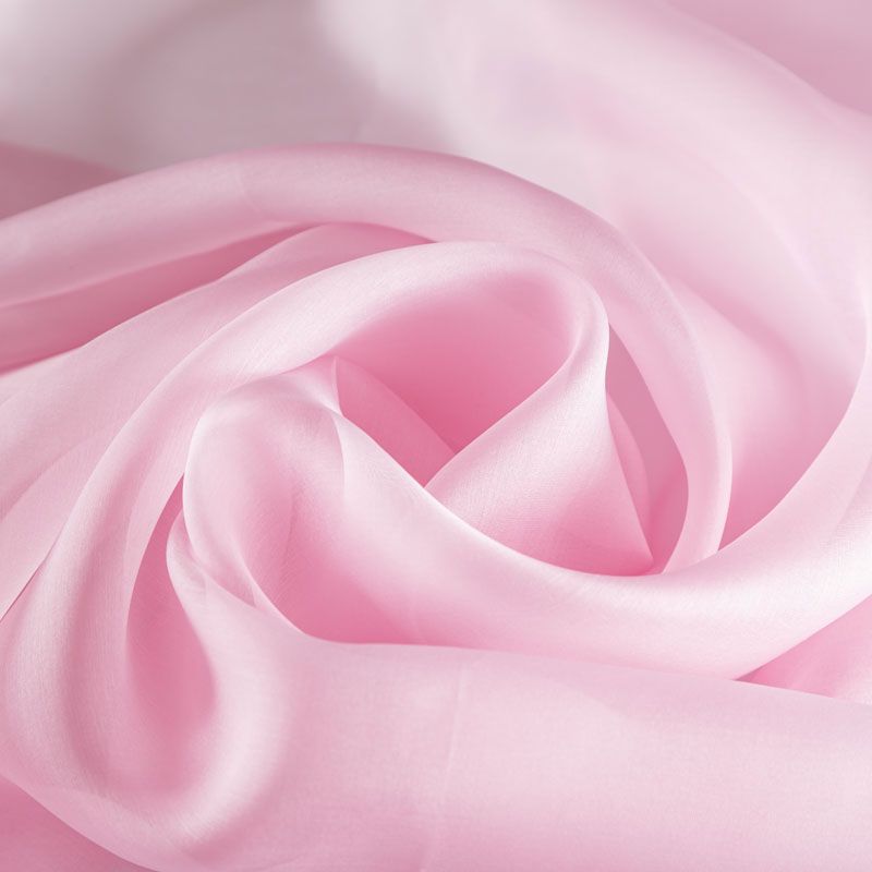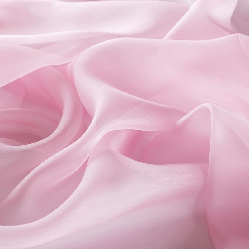 Шелковая невесомая органза с искрящейся поверхностью розового цвета. Ткань легкая, тонкая, пластичная, хорошо драпируется, просвечивает, отлично держит форму. Подойдет на блузку, платье, тунику или юбку на подкладе.
