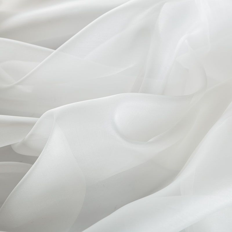 Шелковая невесомая органза с искрящейся поверхностью молочного оттенка. Ткань легкая, тонкая, пластичная, хорошо драпируется, просвечивает, отлично держит форму. Подойдет на блузку, рубашку, платье, тунику или юбку на подкладе.