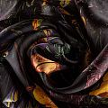 Шелковая органза с крупным ярким цветочным принтом на черном фоне. Хорошо держит форму, легкая, тонкая, просвечивает. Подойдет на блузку, платье, тунику или юбку.
