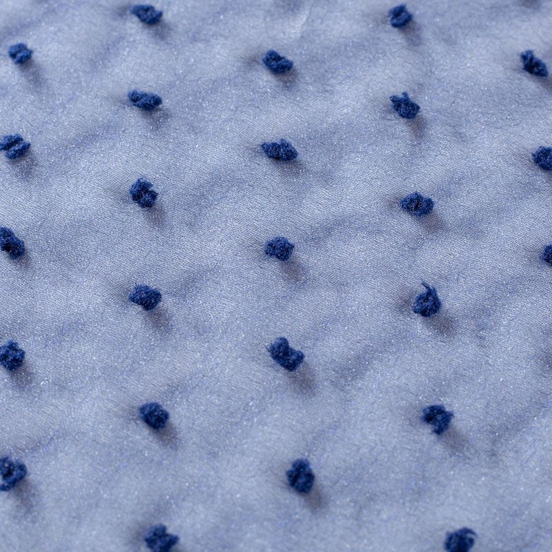 Легчайший, изящный, воздушнный и прозрачный материал с благородной переливчатой поверхностью. Прекрасно держит форму в заложеных складках. На лицевой стороне объемные декоративные элементы из флока диаметром 0.5 см. Подойдет для создания в изделии декоративных деталей, новогодних костюмов, нарядных платьев, блузок.