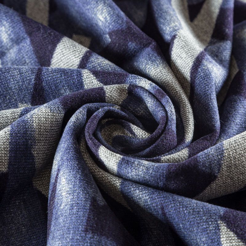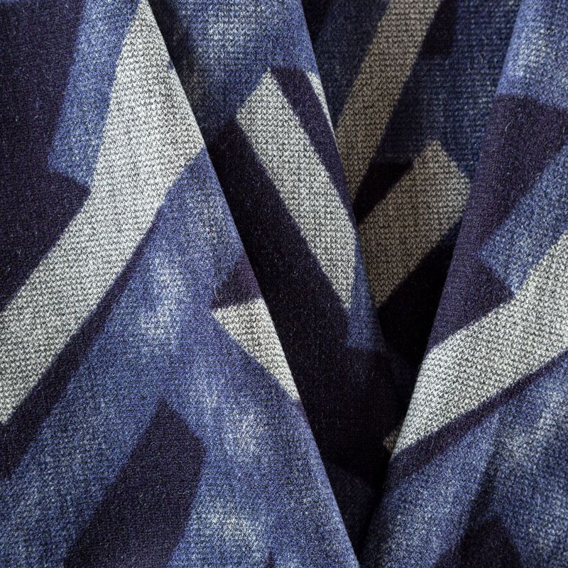 Плотный пальтовый трикотаж в сине-серых оттенках с абстрактным принтом. Обе стороны ткани гладкие, приваляные, срезы не осыпаются, хорошо держит форму, теплый. Идеален для пошива пальто,теплых жакетов, жилетов, кейпа, кардигана.
