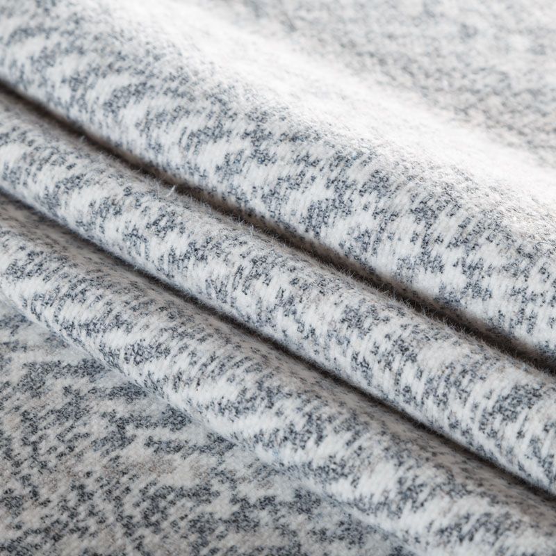 Плотный двухслойный пальтовый трикотаж белого цвета с геометрическим орнаментом серого оттенка. Ткань очень приятная на ощупь, пластичная, теплая и уютная, поверхность мягкая и шелковистая. Изнанка однотонная молочного оттенка. Прекрасно подойдет для  пошива пальто, теплых жакетов, курток, кардиганов, костюмов.