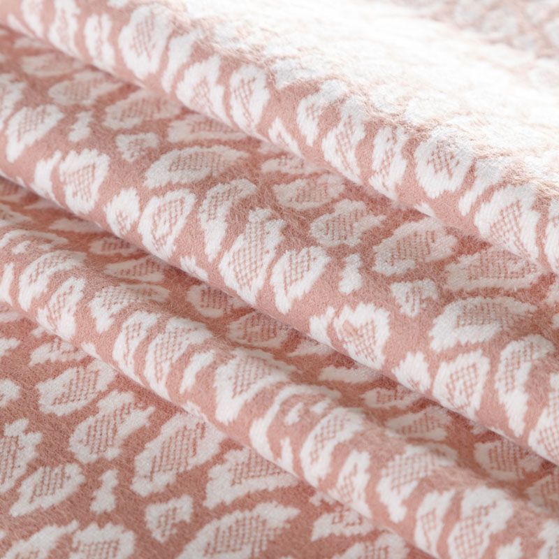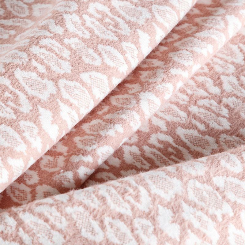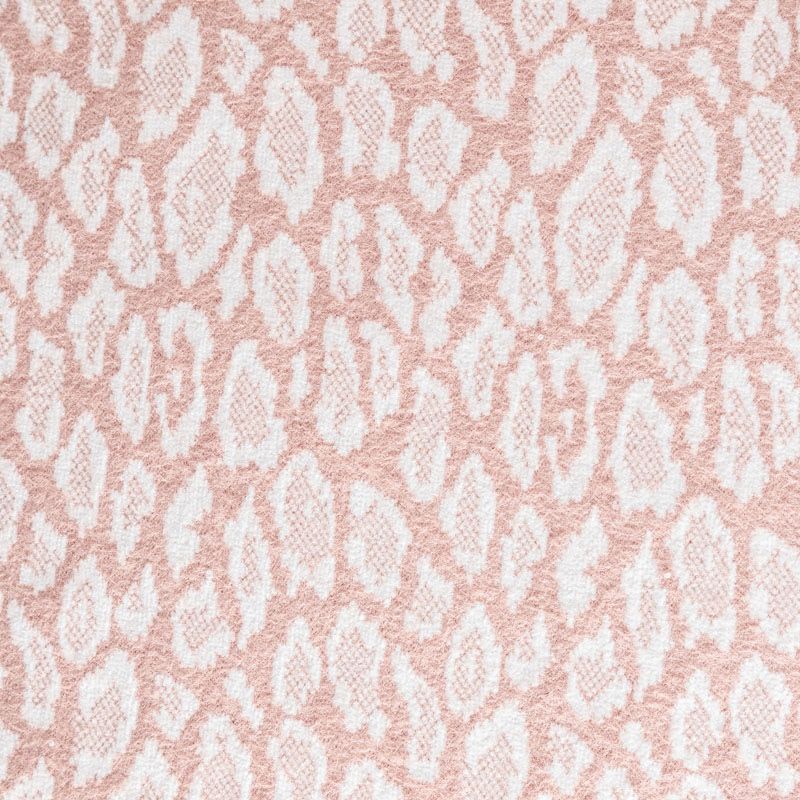 Плотный двухслойный пальтовый трикотаж розового оттенка со стилизованным анималистическим узором белого цвета. Ткань очень приятная на ощупь, пластичная, теплая и уютная, поверхность мягкая и шелковистая. Изнанка однотонная молочного оттенка. Прекрасно подойдет для  пошива пальто, теплых жакетов, курток, кардиганов, костюмов.