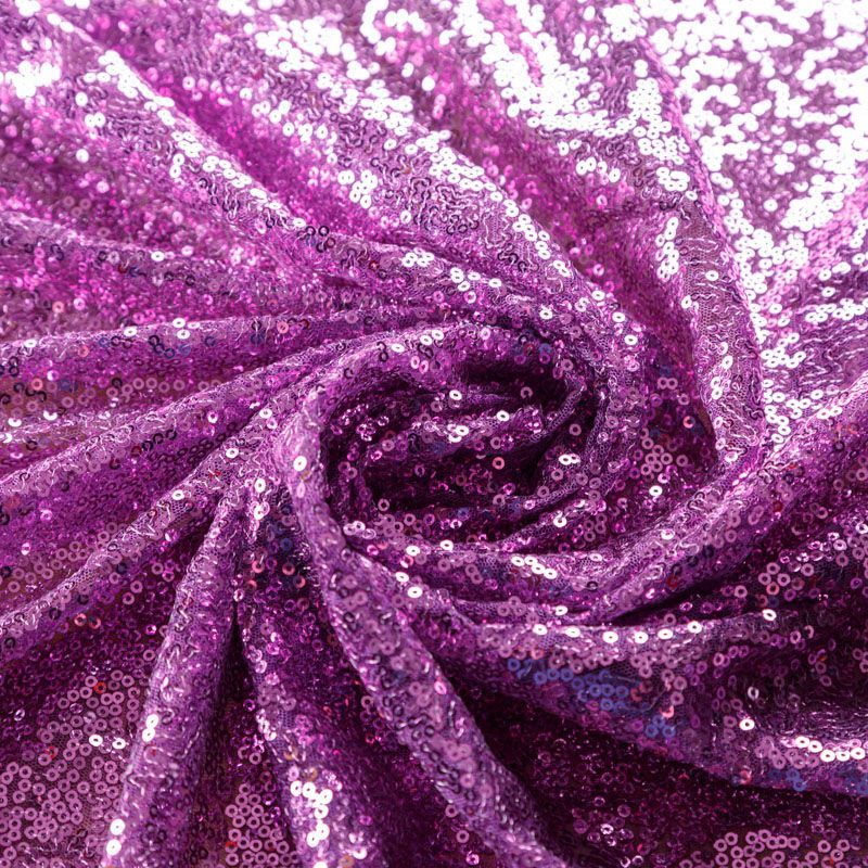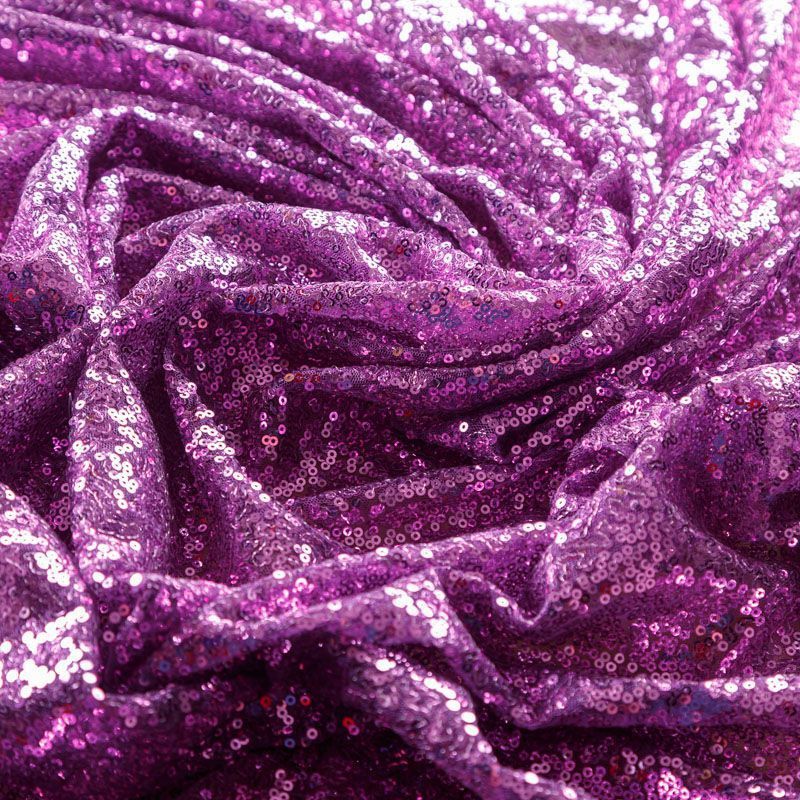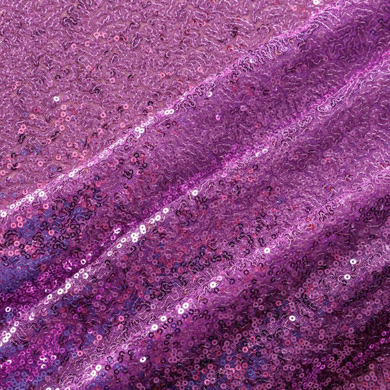 Блестящие пайетки в сиреневом оттенке. Мелкие, размером около 3 мм, расположены в хаотичном порядке. Основа - мягкая и эластичная сетка.  Ткань полупрозрачная, может потребоваться подклад. Подойдет для вечернего, коктейльного платья, юбки, нарядных детских изделий, танцевальных и сценических костюмов.