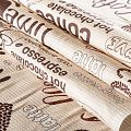 Качественная натуральная хлопчатобумажная ткань, обладающая высокой гигроскопичностью, с принтом на кофейную тему. Универсальный материал, из которого  шьют кухонные полотенца, скатерти, прихватки, салфетки.