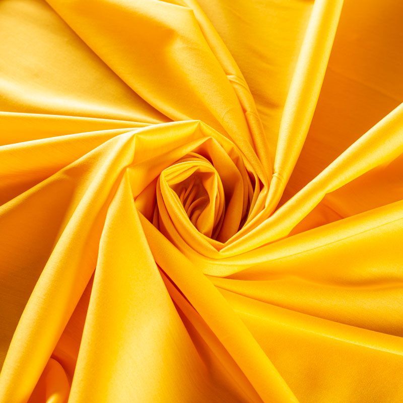 Однотонный плательно-рубашечный хлопковый поплин насыщенного желтого оттенка. Ткань лёгкая, слегка прозрачная, поверхность матовая, гладкая, приятная к телу, хорошо драпируется, тянется за счет эластана в составе. Прекрасно подойдет блузы, платья-рубашки, летнего сарафана, туники.