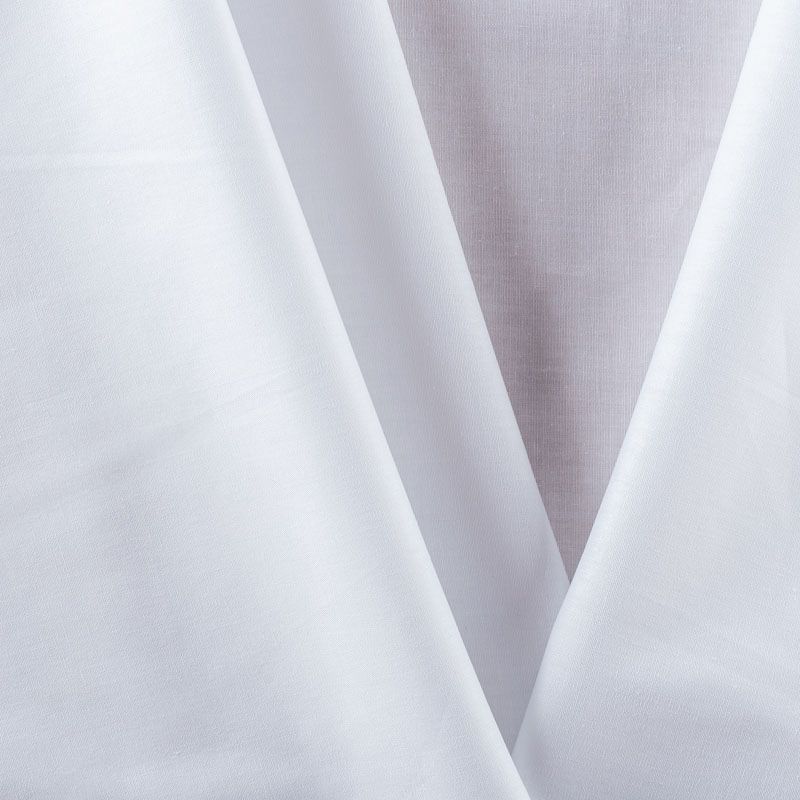 Однотонный плательно-рубашечный хлопковый поплин белоснежного оттенка. Ткань лёгкая, слегка прозрачная, поверхность матовая, гладкая, приятная к телу, хорошо драпируется, тянется за счет эластана в составе. Прекрасно подойдет блузы, платья-рубашки, летнего сарафана, туники.