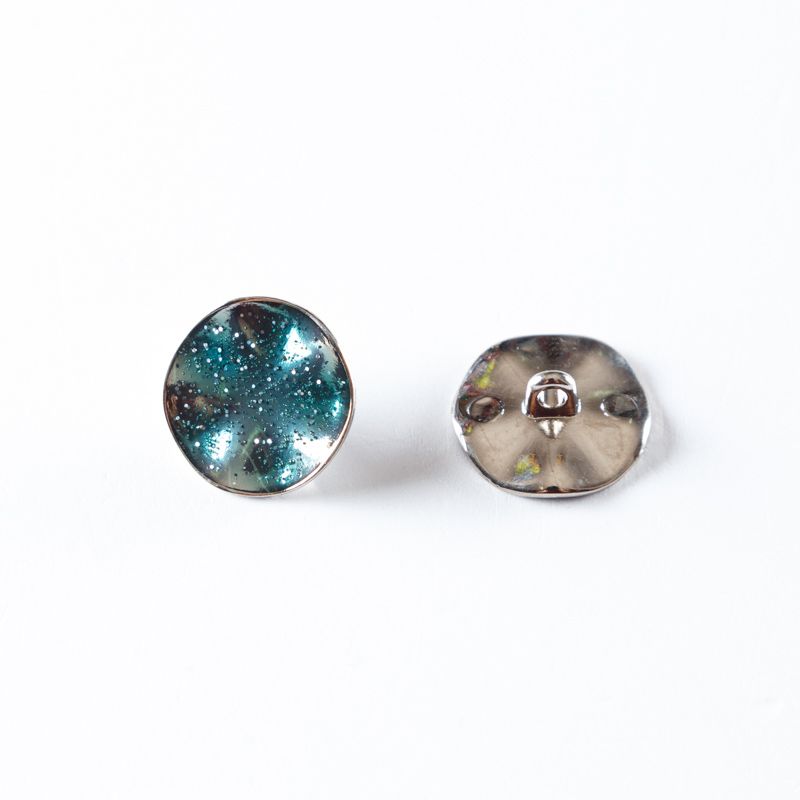 Пуговица на ножке 27 мм металл 493766 серебро/зеленый в Москве