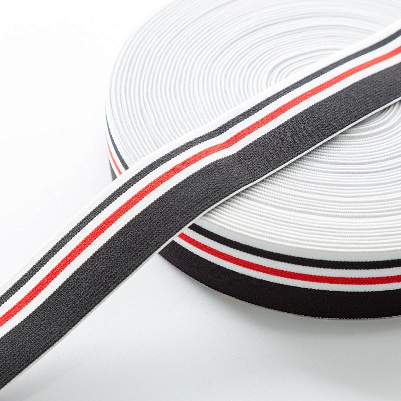 Резинка декоративная текстильная по текстуре плотная, держит форму, поверхность гладкая с легким блеском, тянется хорошо, мягко. По назначению для отделки одежды.
