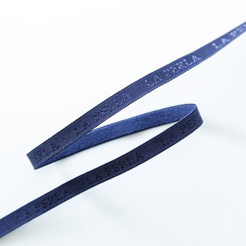 Бретелечная резинка используется для обработки стана бюстгальтера, а также для бретелей. Матовая с жаккардовой надписью бренда. Края ровные.