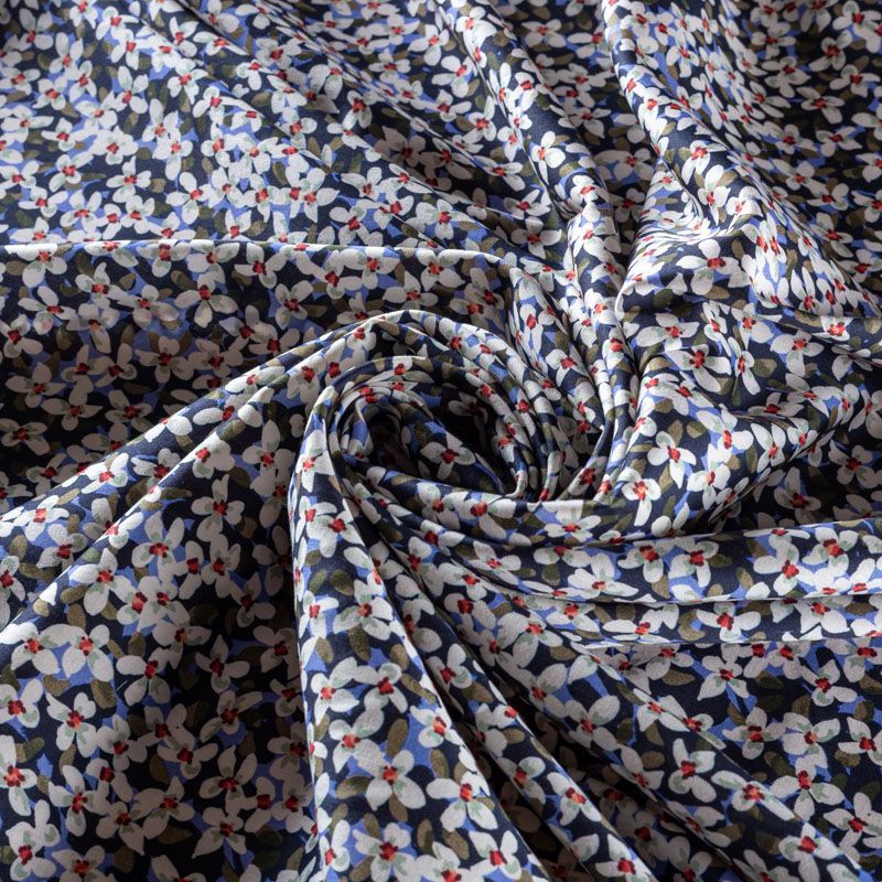 Блузочно-рубашечный хлопок сатинового плетения с мелким цветочным принтом. Ткань тонкая, легкая, слегка прозрачная, мягкая и шелковистая на ощупь. Сатин очень пластичный, хорошо драпируется, немного держит форму. Подойдет для пошива различных предметов летнего гардероба: платья, сарафана, туники, рубашки, топа.