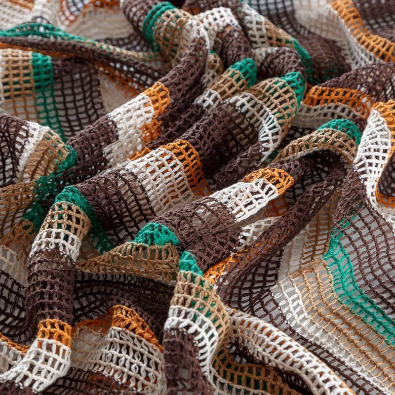 Вязаная сетка из натуральных хлопка в вертикальную цветную полоску.Форма ячейки - квадрат. Фактурный, пластичный материал, подходящий для создания эффектных образов: платья, юбки, брюк на подкладе, аксессуаров, сценических костюмов, пляжной одежды.
