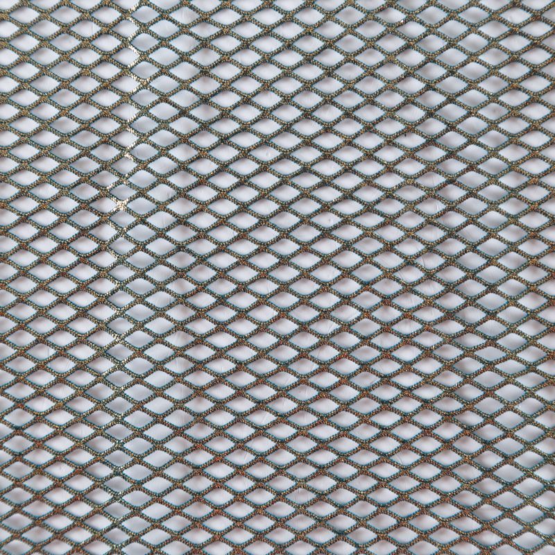 Рельефный полупрозрачный материал с сетчатой структурой. Поверхность полотна с металлизированным золотым напылением, которое придает материалу легкий блеск и мерцание. Полотно мягкое, растяжимое во всех направлениях. Сетки нашли свое применение в процессе пошива и последующего декора вечерних нарядов, свадебных платьев, спортивной одежды, театральных костюмов.