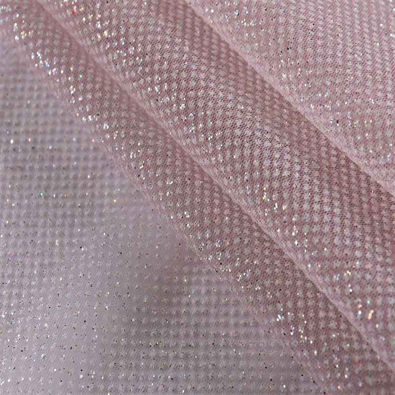 Рельефный прозрачный материал с сетчатой структурой. Поверхность полотна с металлизорованным глиттером, который придает материалу блеск и мерцание. Полотно жесткое, не тянется, отлично держит форму. Сетки нашли свое применение в процессе пошива и последующего декора вечерних нарядов, свадебных платьев, спортивной одежды, театральных костюмов.