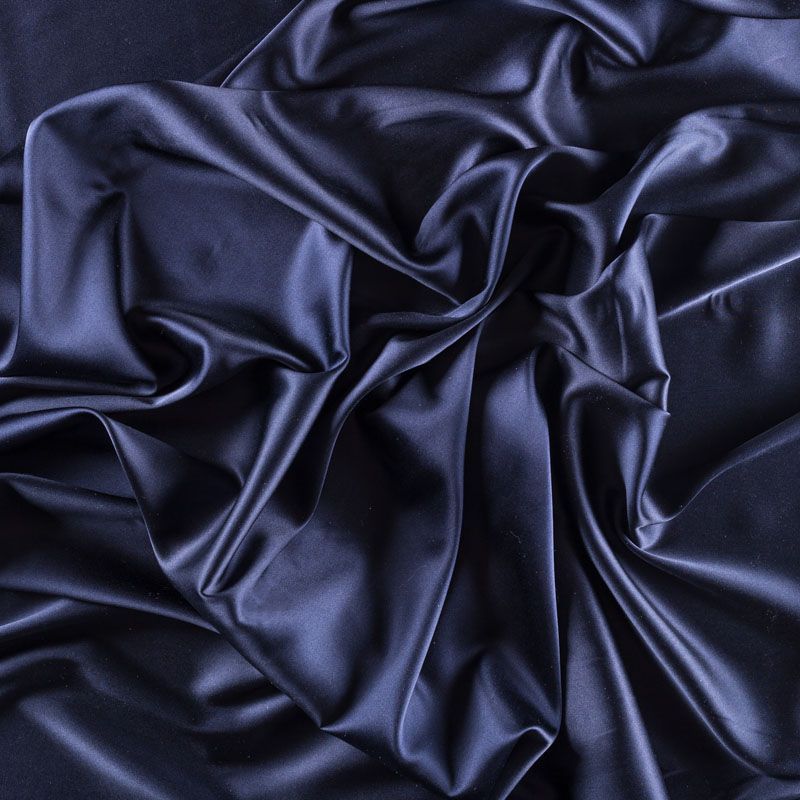 Блузочно-плательный атласный шелк с эластаном глубокого синего цвета. Невесомая гладкая ткань приятно прилегает к телу, дарит ощущение прохлады и нежно струится. Небольшой процент эластана делает материал упругим и растяжимым. Ткань не просвечивает, идеально подойдет для платья, блузки, рубашки, шелкового топа, юбки, актуальна для пижамы и комбинации.