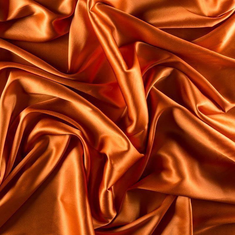 Блузочно-плательный атласный шелк с эластаном оттенка жженого апельсина. Невесомая гладкая ткань приятно прилегает к телу, дарит ощущение прохлады и нежно струится. Небольшой процент эластана делает материал упругим и растяжимым. Ткань не просвечивает, идеально подойдет для платья, блузки, рубашки, шелкового топа, юбки, актуальна для пижамы и комбинации.