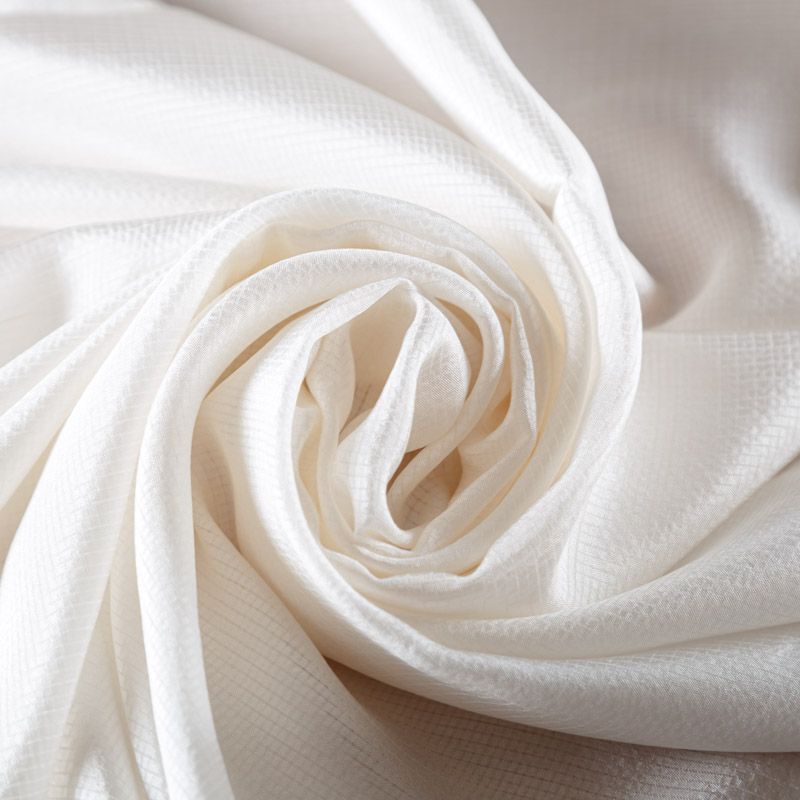 Итальянский матовый шелк с жаккардовым узором, тонкий, полупрозрачный, отлично драпируется, легкий и струящийся. Идеально подойдет для пошива платьев и сарафанов расклешенных моделей, с воланами, летящих юбок, топов, блузки, костюма в пижамном стиле.