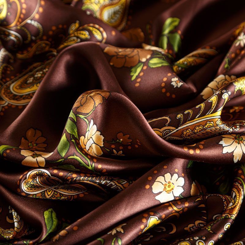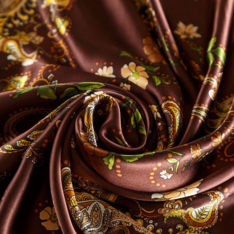 Шелк натуральный К15-372 шоколадный принтованный в Москве