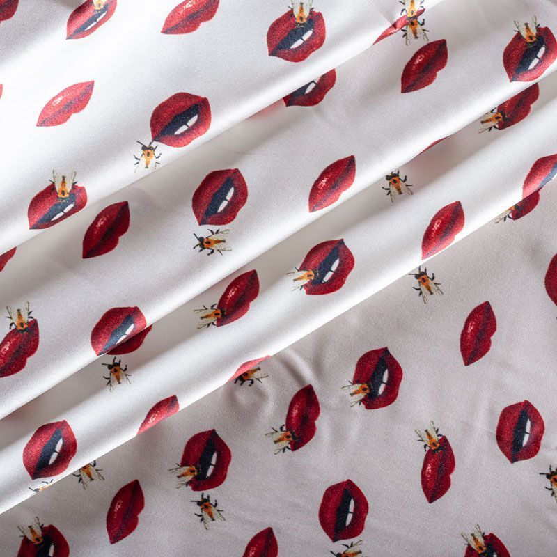Натуральный шелк с атласной поверхностью, легкий, струящийся, хорошо драпируется, тянется за счет эластана в составе. Модный принт выполнен в ярких оттенках, который будет уместен для пошива летнего сарафана, платья, блузки, костюма в пижамном стиле, широких брюк или юбки.
