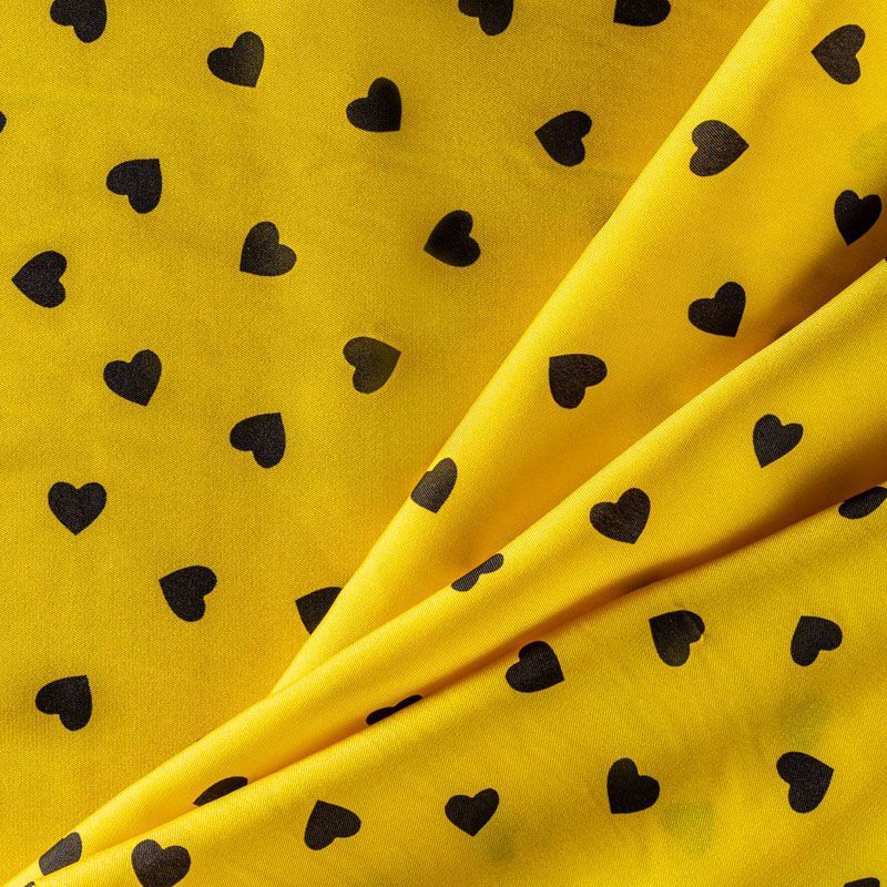 Итальянский креповый шелк с романтическим принтом на солнечном желтом фоне. Ткань тонкая, не просвечивает, отлично драпируется, легкая и струящаяся. Идеально подойдет для пошива платьев и сарафанов расклешенных моделей, с воланами, летящих юбок, топов, блузки, костюма в пижамном стиле.