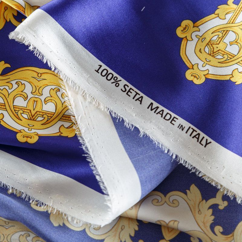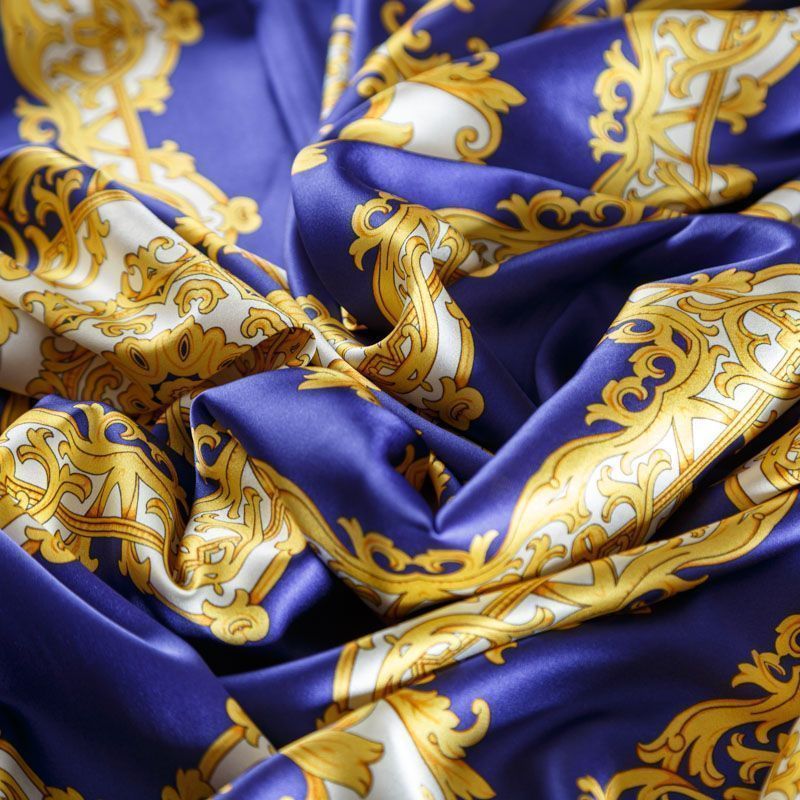 Шелк натуральный К2-309 синий принтованный в Москве