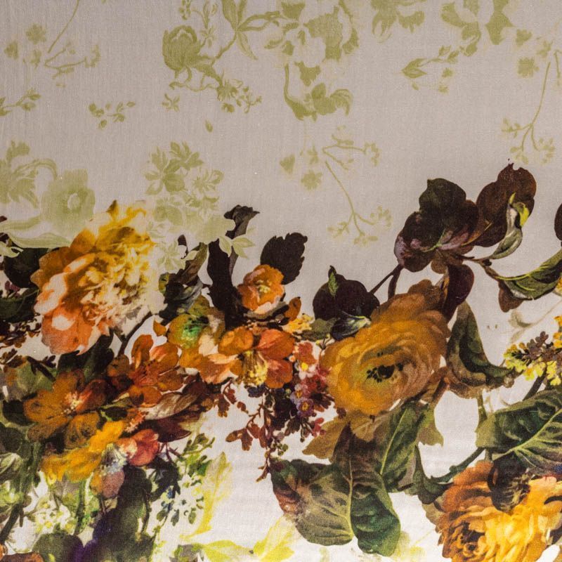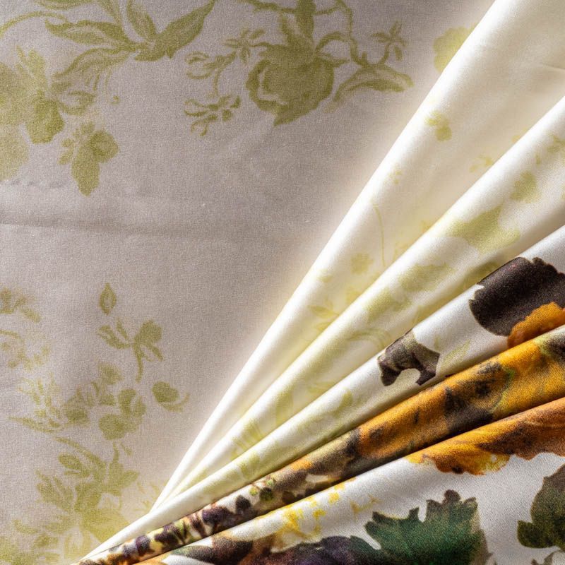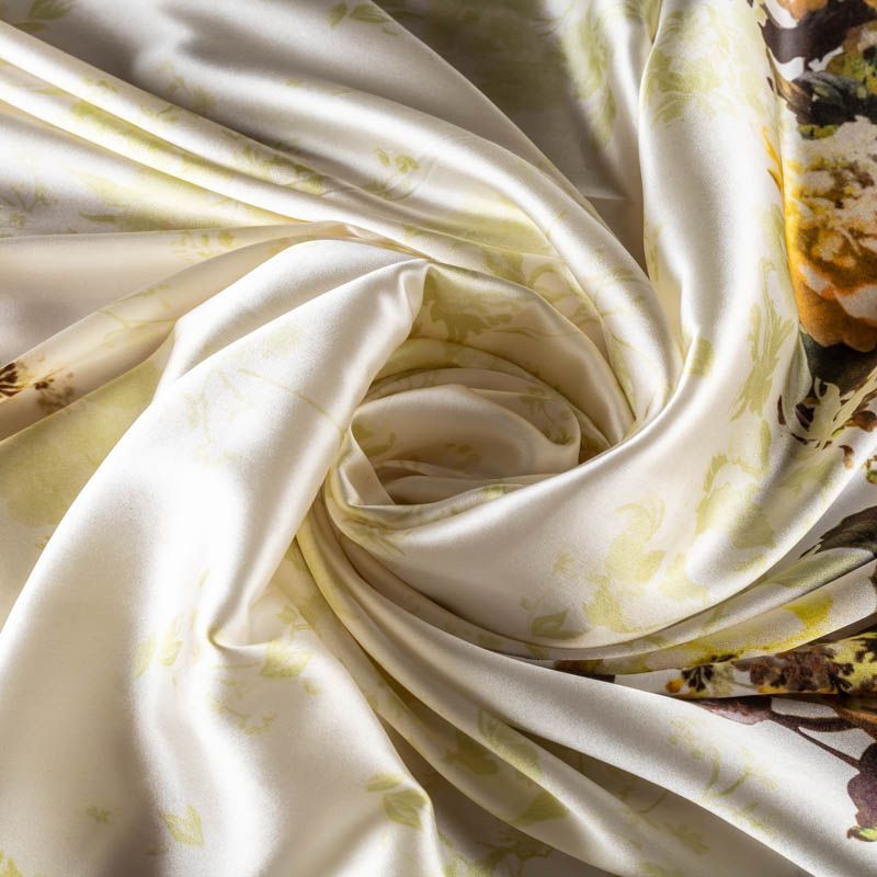 Шелк натуральный К2-394 молочный принтованный в Москве