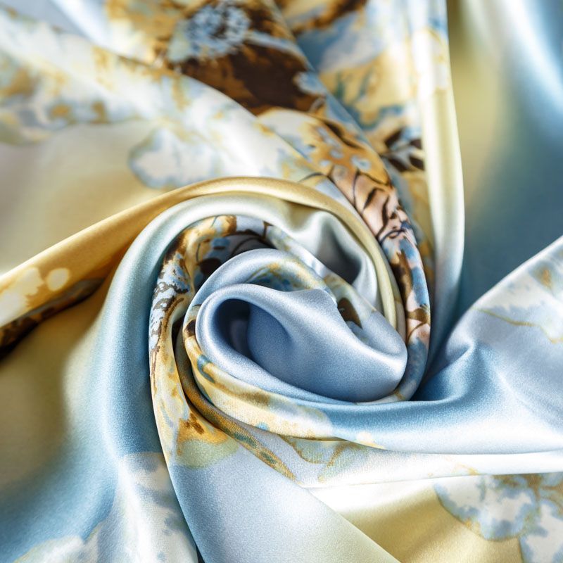 Шелк натуральный К30-242 бежево-голубой принтованный в Москве