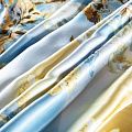 Шелк натуральный К30-242 бежево-голубой принтованный