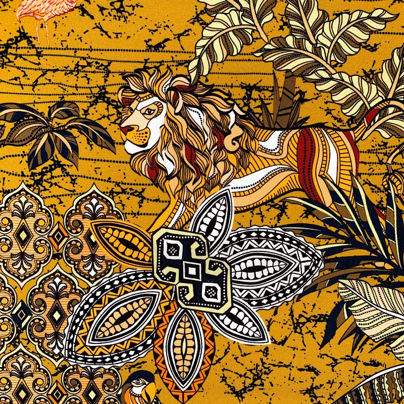 Шелк натуральный К32-153 шафрановый принтованный