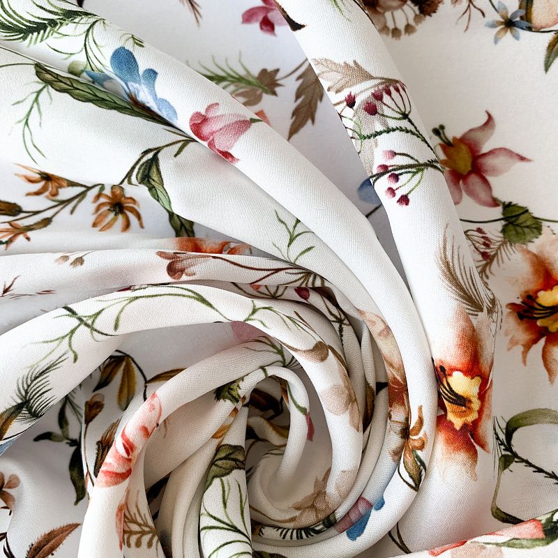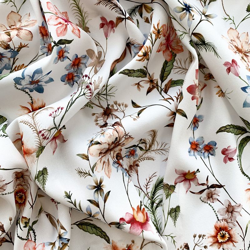 Шелк натуральный К32-154 молочный принтованный в Москве