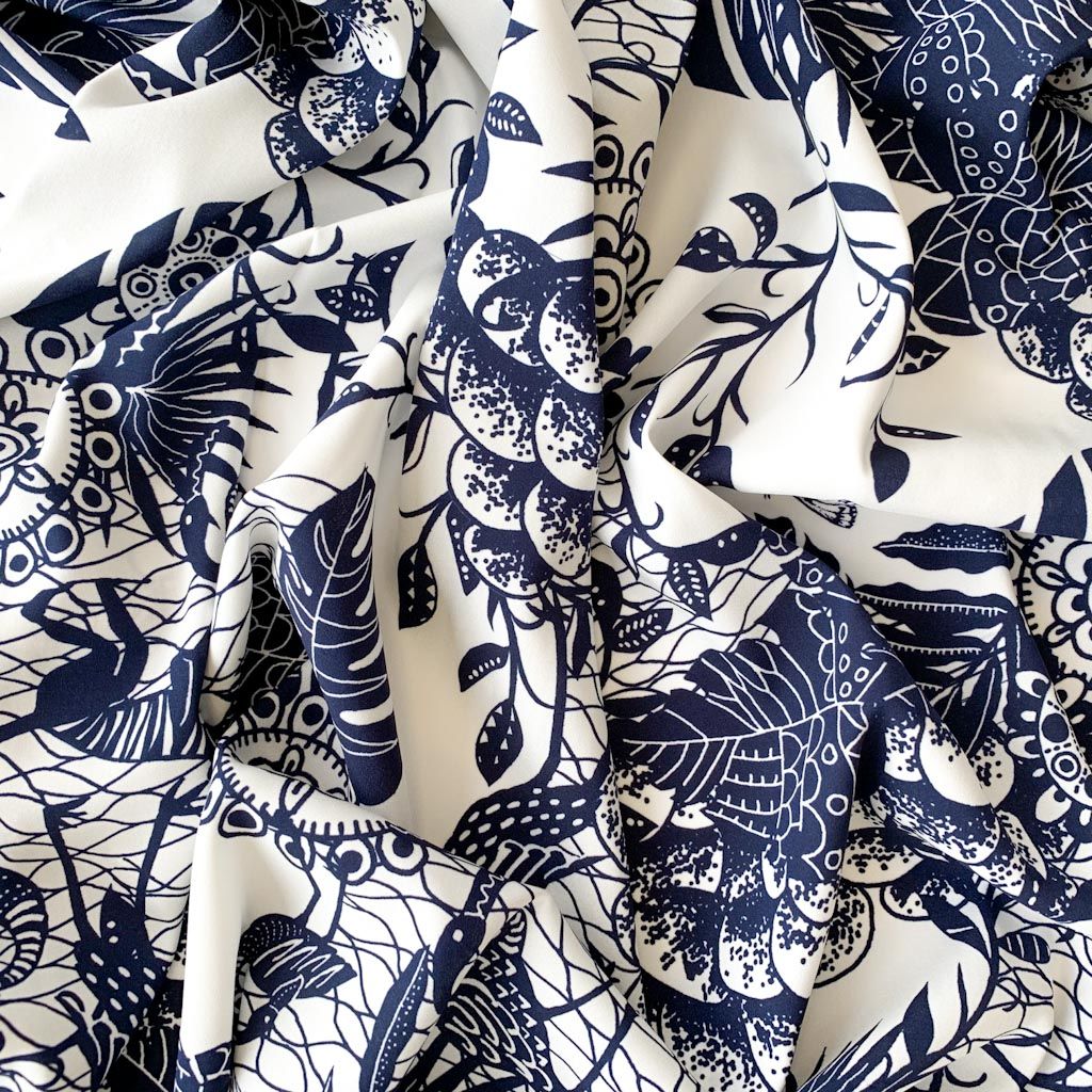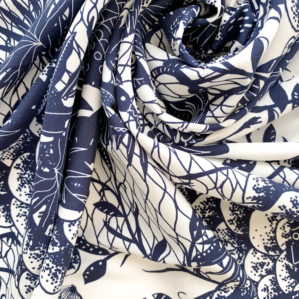 Шелк натуральный К32-157 молочный принтованный в Москве