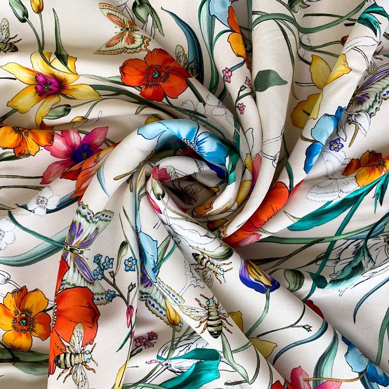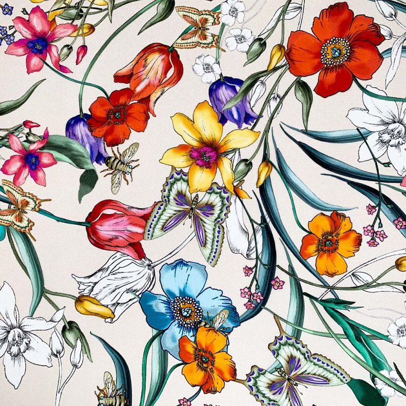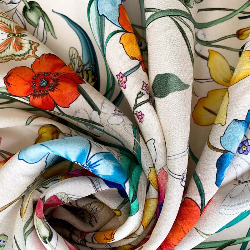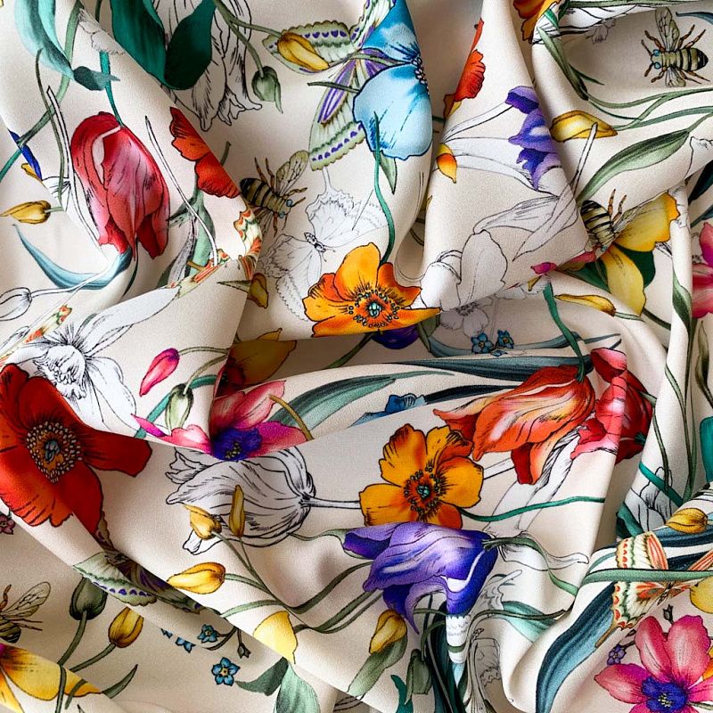 Шелк натуральный К32-159 сливочный принтованный в Москве
