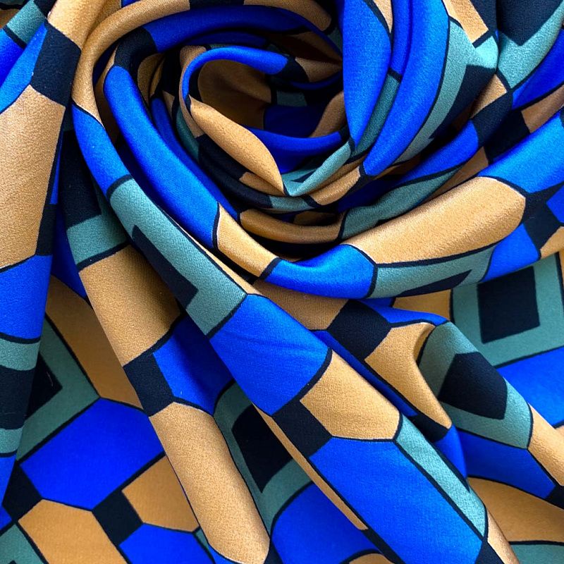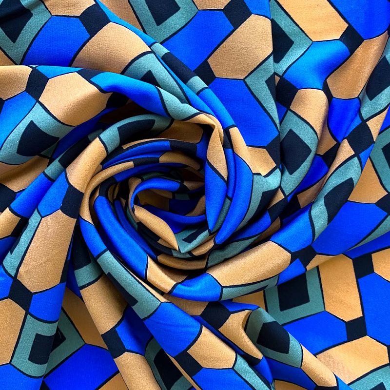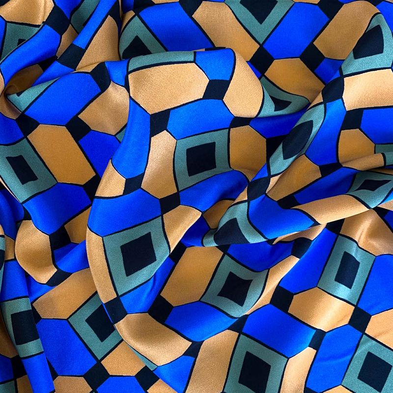 Шелк натуральный К32-232 ярко-синий принтованный в Москве