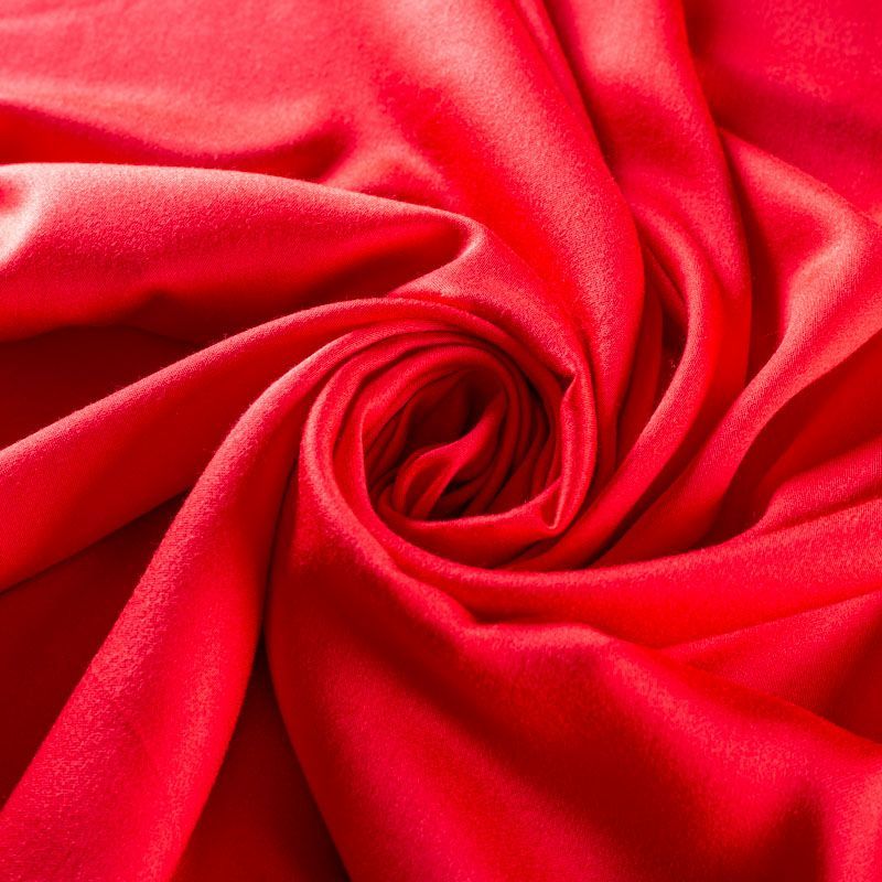 Плательно-блузочный штапель с добавлением шелка красного оттенка. Мягкий, нежный, пластичный, шелковистый на ощупь, хорошо драпируется, тянется за счет эластана в составе. Особенно актуален летом, он очень легкий, обволакивающий прохладой. Идеален для пошива летней детской одежды, сарафанов, платьев, юбок, блузок, домашней одежды: халатов, ночной пижамы.