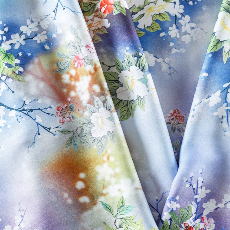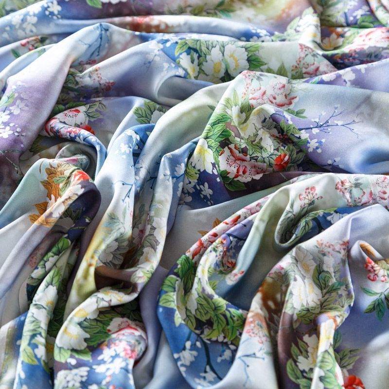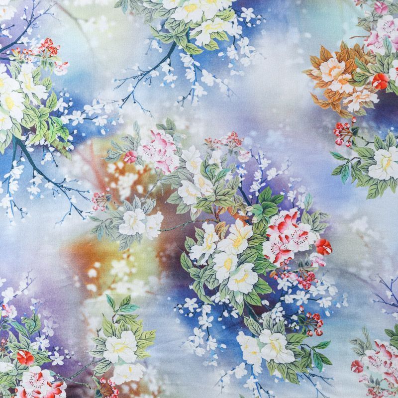 Шелк-штапель 069-09208 голубой принтованный в Москве