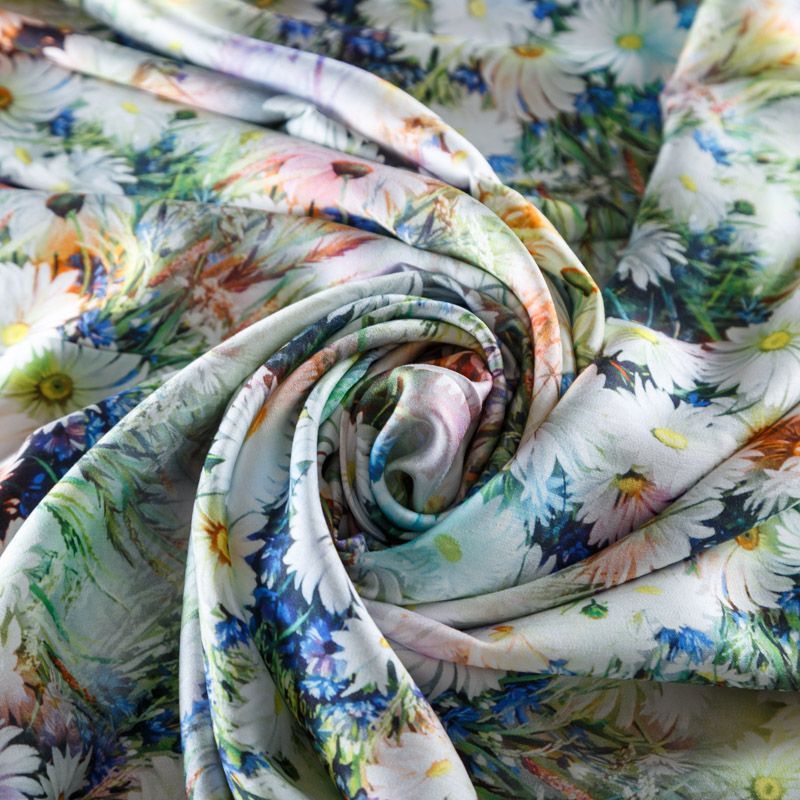 Мягкий, нежный, пластичный и шелковистый на ощупь материал, хорошо драпируется, практичный. Особенно актуален летом, он очень легкий, обволакивающий прохладой. Идеален для пошива летней детской одежды, сарафанов, платьев, юбок, блузок, домашней одежды: халатов, ночной пижамы.