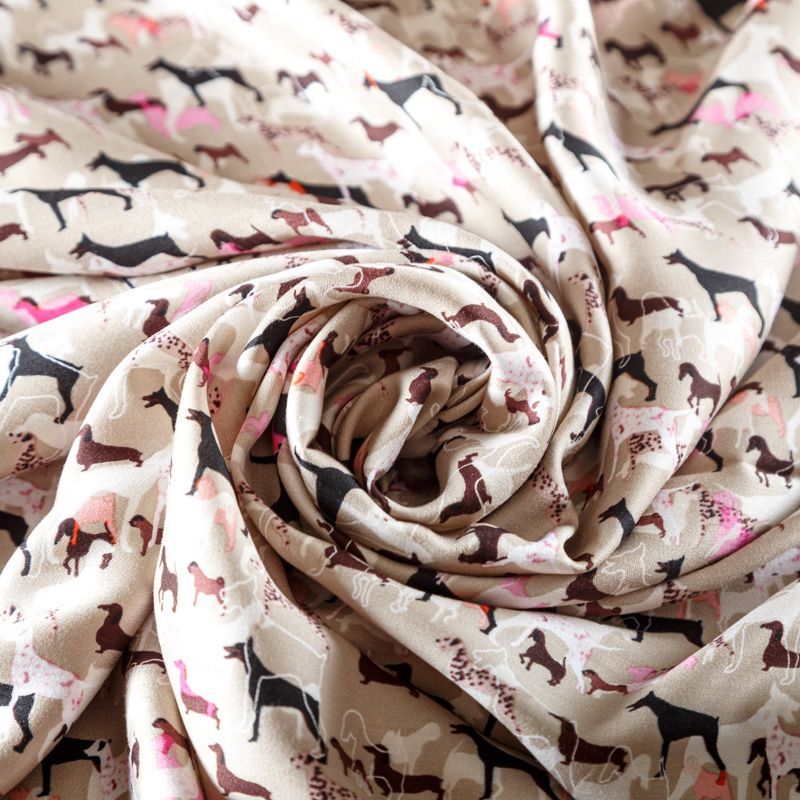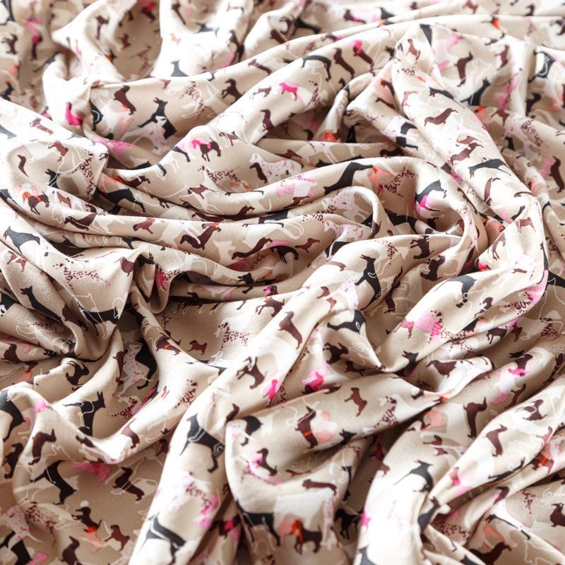 Шелк-штапель 069-09688 бежевый принтованный в Москве